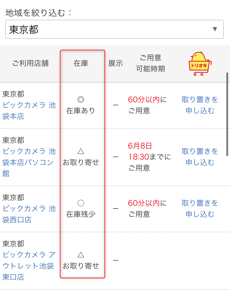 ビックカメラの店舗在庫の確認方法