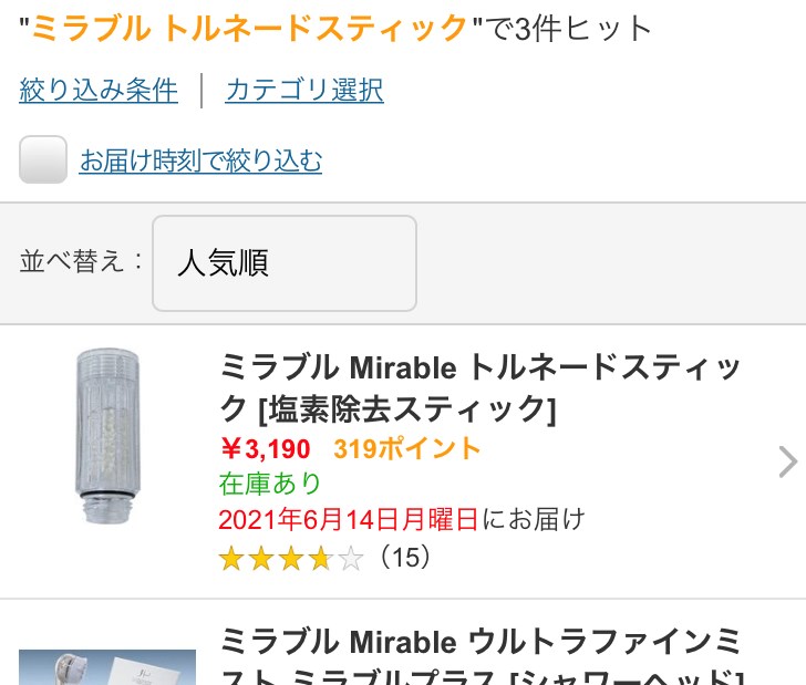 ②商品検索で「ミラブル トルネードスティック」で検索し、商品ページに移動します。